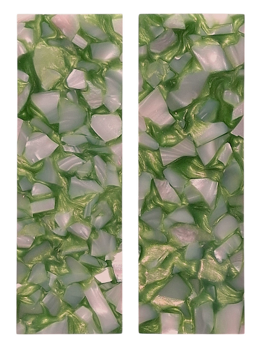 View full detailsTerrazzo Pearl Scales Scales (2 Pieces); 5 1/4" Long, 1 3/4" Wide, 3/8" Thick. Half Sheet; 7 3/8" Long, 5 1/4" Wide, 3/8" Thick. Full Sheet; 10 7/8...