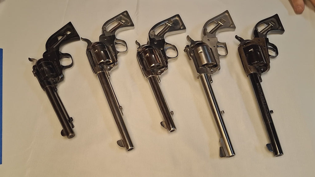 Knowing what grips you need for a Ruger single action can be difficult. Ruger has 5 single action grip frames currently in production, all Ruger single action guns use one of these 5 grip frames.